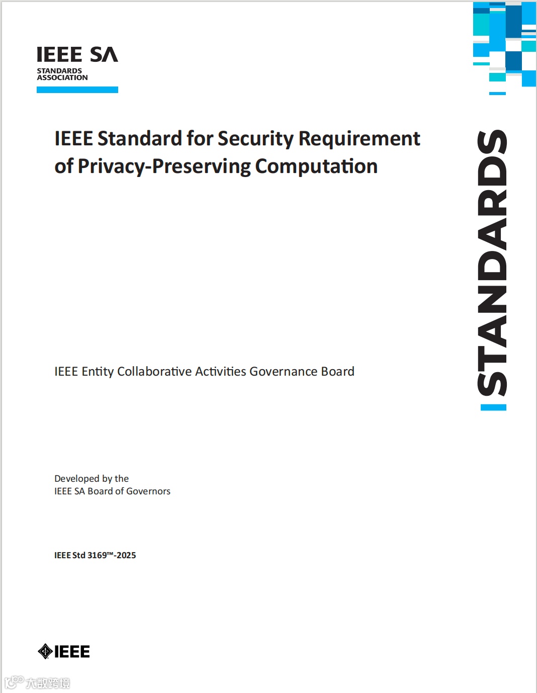 2025年10月17日,IEEE SA(Institute of Electrical and Electronics Engineers- Standards Association电气电子工程师协会-标准协会)正式发布了IEEE 3169-2025 “IEEE Standard for Security Requirement of Privacy-Preserving Computation”国际标准,该标准由蚂蚁集团牵头,云象主要参与,超过30家高校、企业和研究机构等共同参与了编制工作,标准对多方安全计算、联邦学习、可信执行环境等多种技术路线下隐私保护计算的安全隐患进行分析,并对多种路线下的隐私保护计算技术统一划分1-5级的安全防护要求,为隐私保护计算提供安全分级的标准规范。