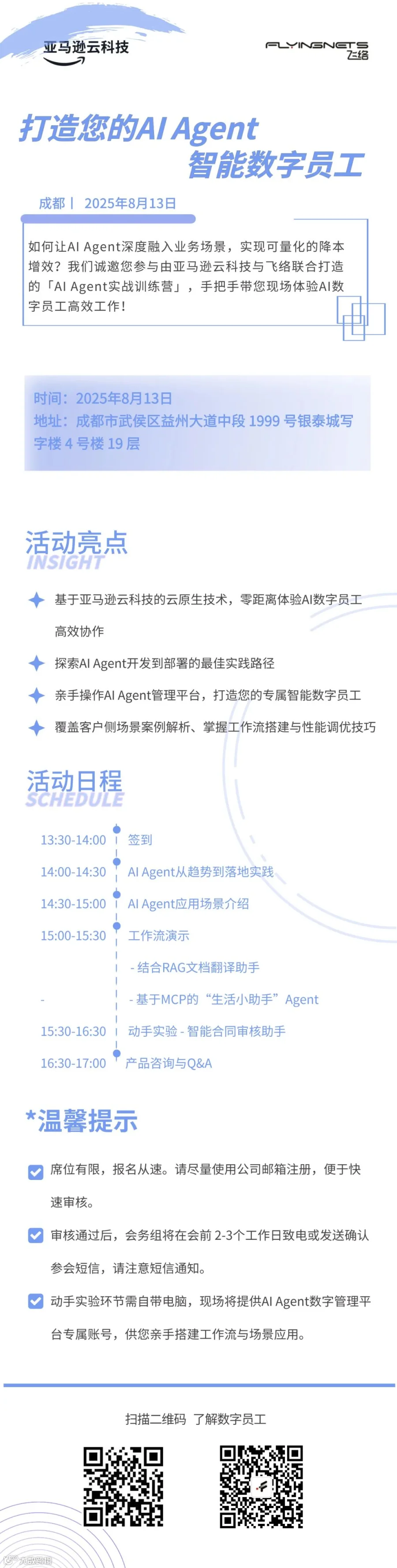 只要您具备行业经验或开发实力,立即扫码报名,飞络诚邀您一起抢占企业级AI爆发红利!