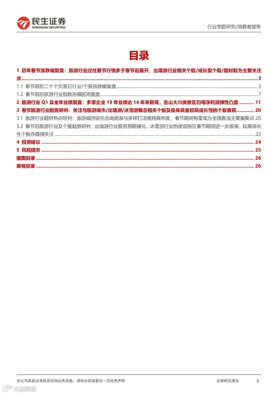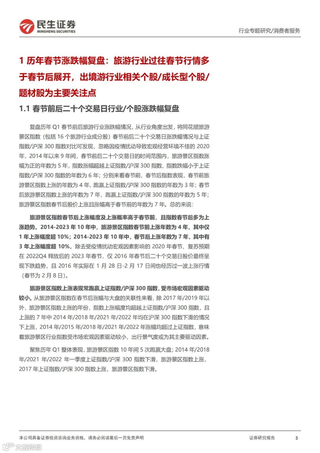 本报告深入分析历年春节前后旅游行业的市场表现与板块走势,系统梳理春节期间旅游消费趋势、游客行为变化及重点细分领域(如景区、酒店、航空、出境游等)的运营数据与发展动向。
