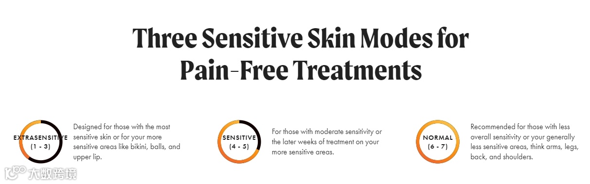 Trynood的产品提供了3种无痛脱毛模式,并针对每种模式,都给出了建议可使用范围。这既能帮助消费者选择合适的模式,也能打消部分潜在消费者的顾虑。