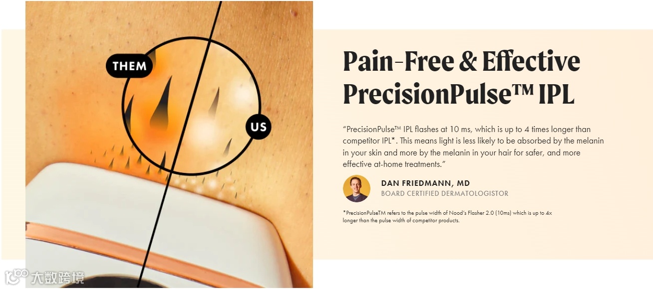 Trynood的脱毛仪,采用了创新技术,使消费者能够无痛完成脱毛,这显然是能够吸引备受传统脱毛方式折磨的消费者,以及因为疼痛被劝退的潜在消费者的。