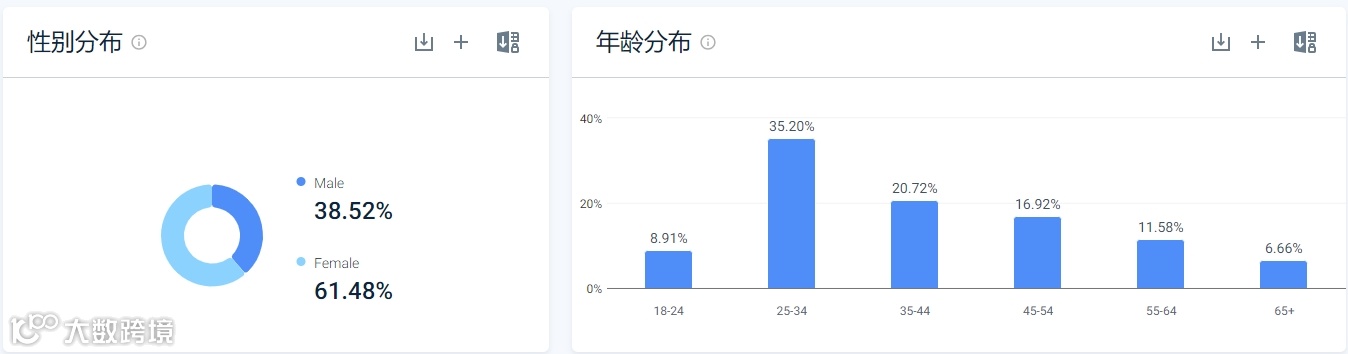 根据similarweb数据显示,Trynood官网女性用户占比为61.48%,男性用户占比为38.52%,年龄则主要集中在25岁到34岁之间,可见Trynood的主要目标受众更多还是聚焦在被毛发困扰的年轻一代身上。