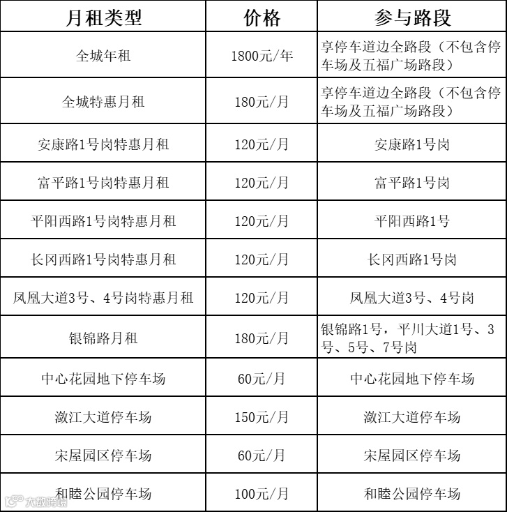 极力推荐各位车主们购买全城特惠月租,停放路段覆盖全城核心区域,含小区周边、商圈附近、办公周边热门路段,平均每天6元钱,比喝一杯奶茶还便宜,再也不用担心寒冷天气中到处找停车位啦!