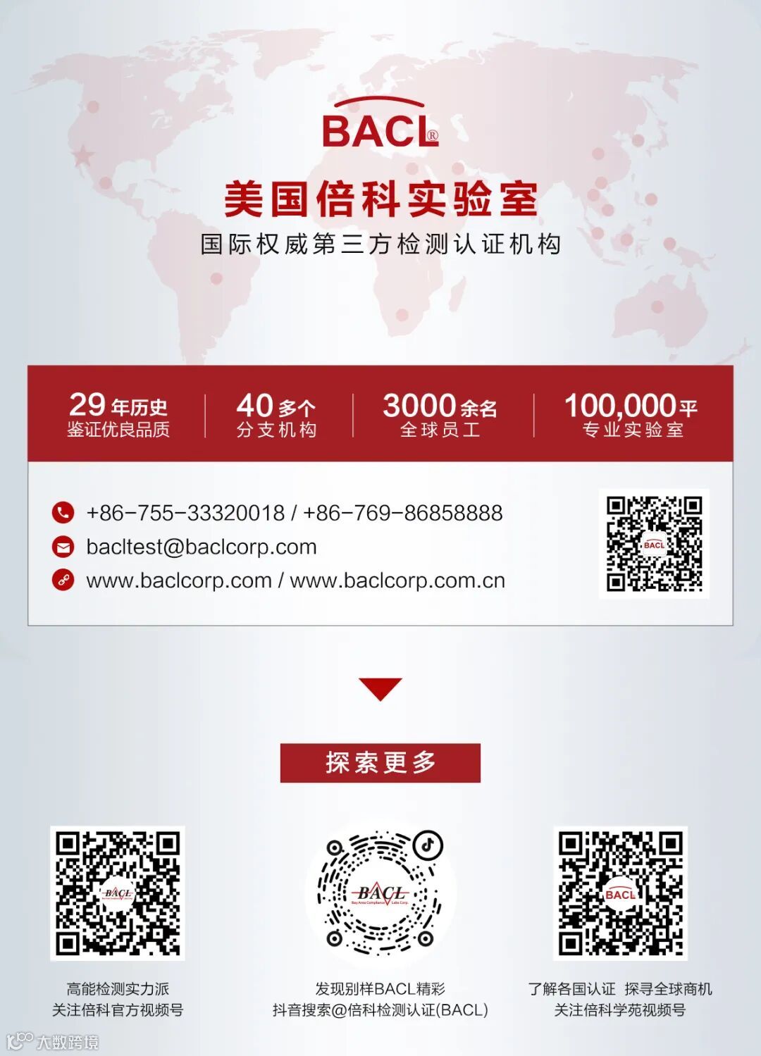 BACL 可为您提供高效可靠的全球认证服务,如IECEE CB Scheme NCB和CBTL、美国(NRTL、FCC、ENERGY STAR)、加拿大(ISED、SCC)、欧盟(CE)、英国(UKCA AB和AOC)、北爱尔兰(UKNI)、韩国(KC)、日本(MIC)、新加坡(IMDA)、中国香港(OFCA)、中国台湾(NCC、BSMI)、埃及(NTRA、GOEIC)、南非(SABS)、越南(MIC),沙特阿拉伯(SASO、CITC)、菲律宾(NTC)、泰国(NBTC)、马来西亚(SIRIM)、印度(BIS、WPC、TEC)等多国家及地区的认证服务,保障您的产品在国际贸易壁垒日趋激烈的今天,依然顺利的进入国际贸易市场!
