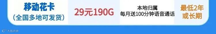 🔥第二个月起:29元,160G全国通用流量+30G定向流量全额到