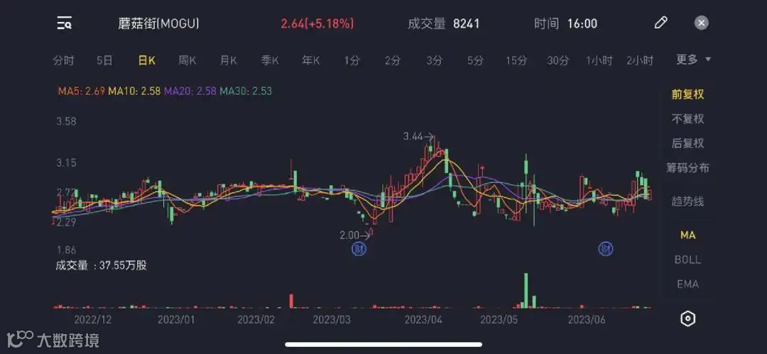 图/蘑菇街股价走向