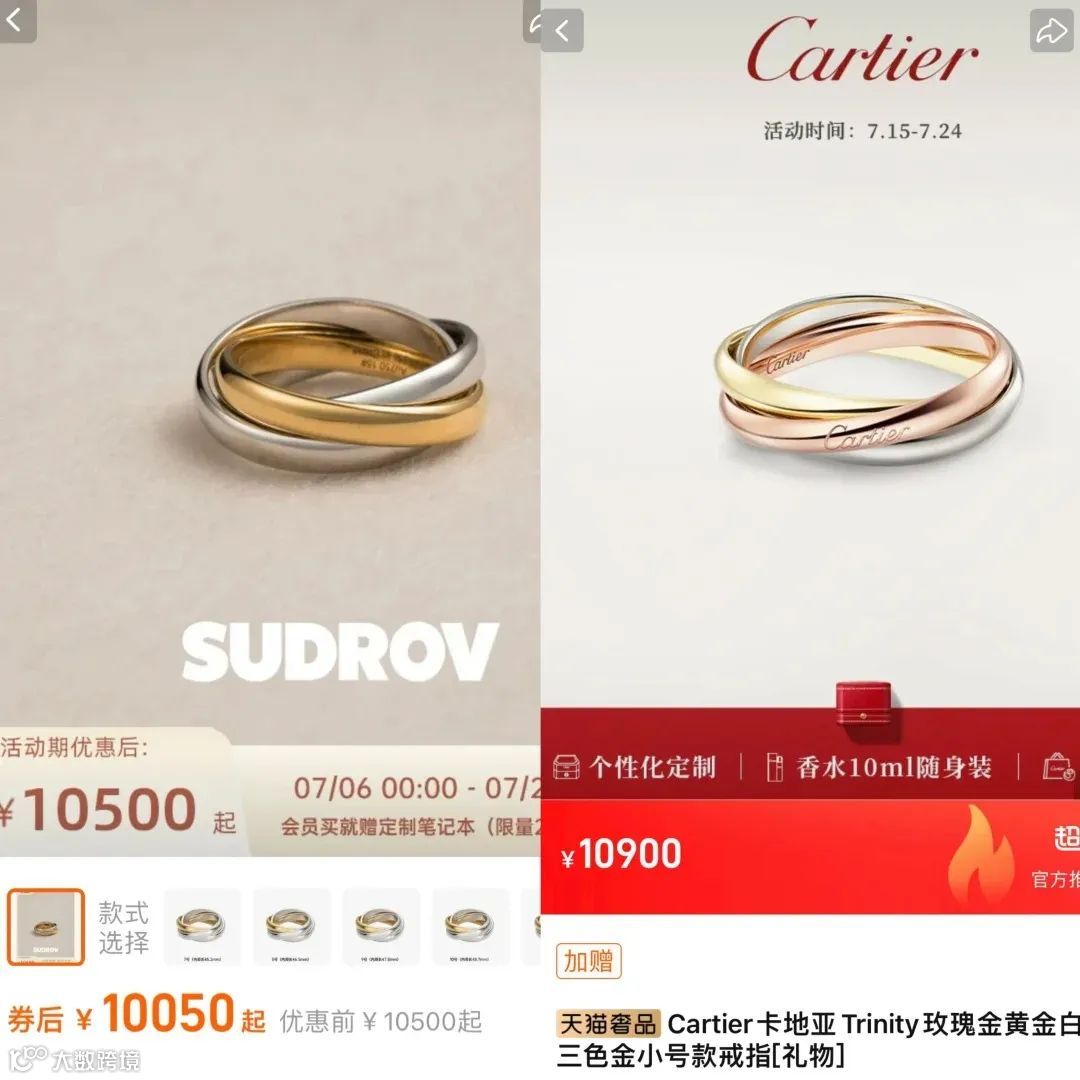 (两款产品对比图,左:素觉,右:卡地亚)