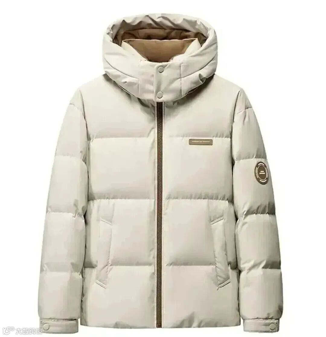 生成商品营销广告(雪中飞 2025 冬款中青年男女同款短款连帽羽绒服,90%-95% 鸭绒填充加厚保暖。含可拆卸帽、撞色领口、收口袖,人体工学剪裁版型立体。四层防钻绒工艺 + 高密度胆布锁绒,分格充)