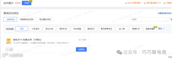 以低价策略报名该活动,控制库存数量,测试市场反应,实现初步出单。