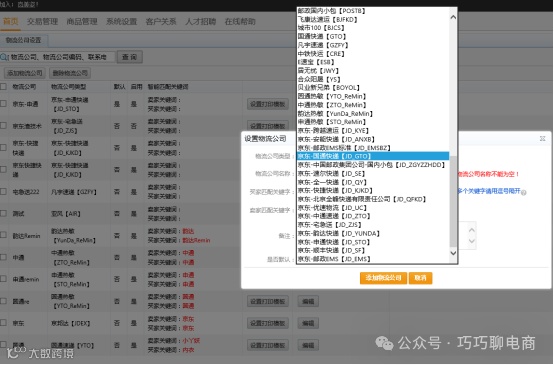 首先在打单系统中添加京东电子面单公司。