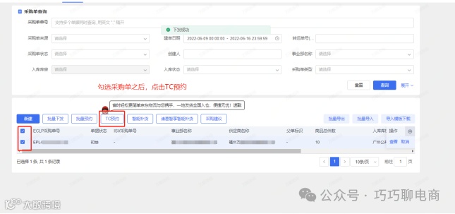 下发后可进行TC预约,支持单个或批量预约。