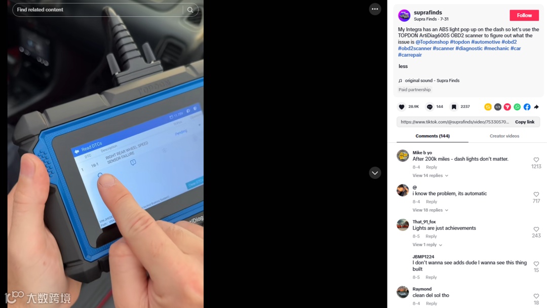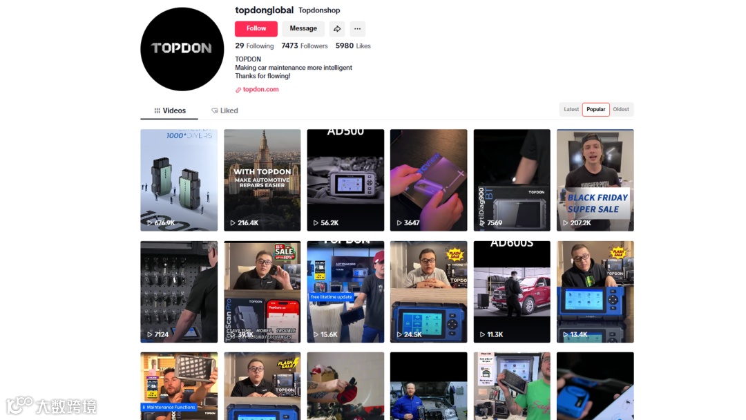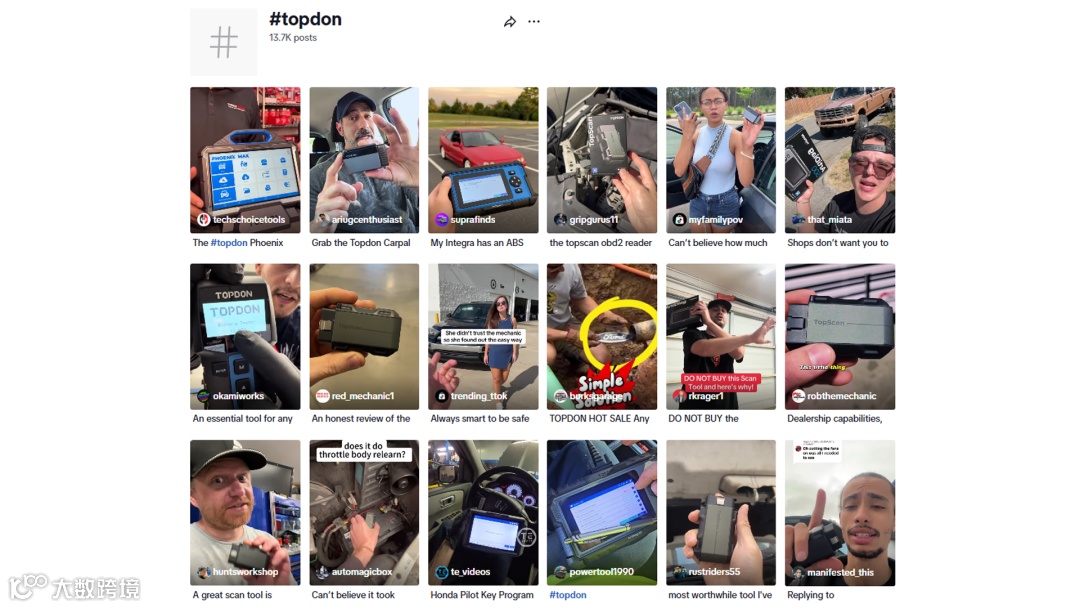 TOPDON在TikTok上专注打造实用工具教学内容,精准锁定汽车DIY爱好者和家庭车主群体。通过开箱视频和功能演示等形式,将产品巧妙融入真实的维修场景,让用户直观感受产品价值。