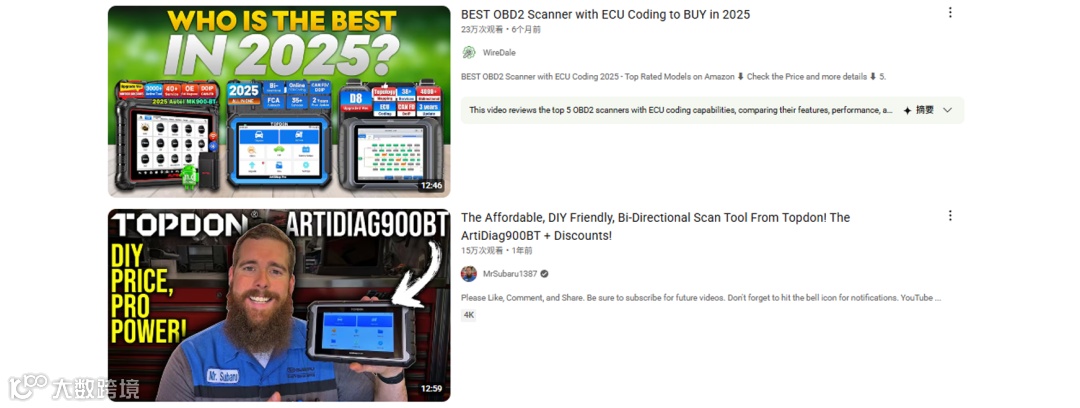 和在TikTok上与汽车爱好者合作不同,TOPDON在YouTube上走的是另一条路!主要面向更专业的用户,TOPDON会和科技类博主合作,拍深度测评的长视频,把产品的专业功能和性能讲得很细。