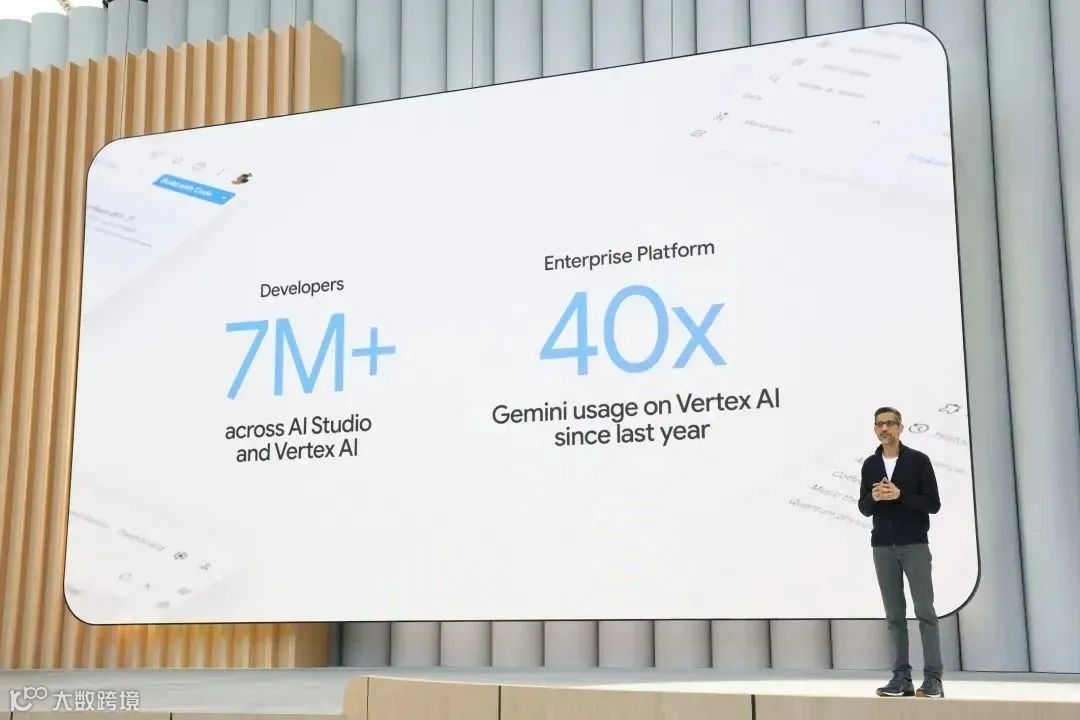 过去一年,谷歌处理的token数量从每月9.7万亿激增至480万亿,增长近50倍。目前已有超700万名开发者使用Gemini构建应用,为去年同期的5倍;Vertex AI使用量增长40倍。Gemini应用月活用户达4亿,其中使用2.5 Pro模型的用户活跃度提升45%。