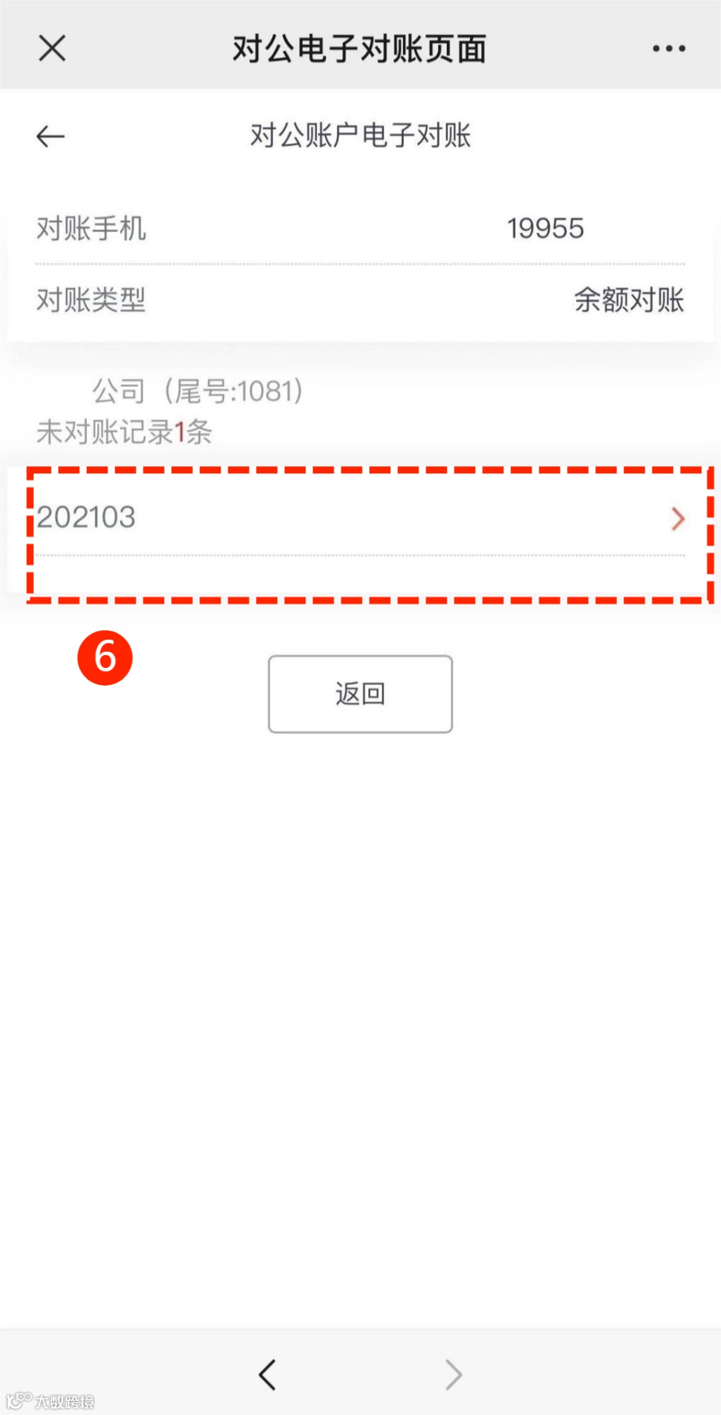 第四步:根据系统提示选择未对账记录