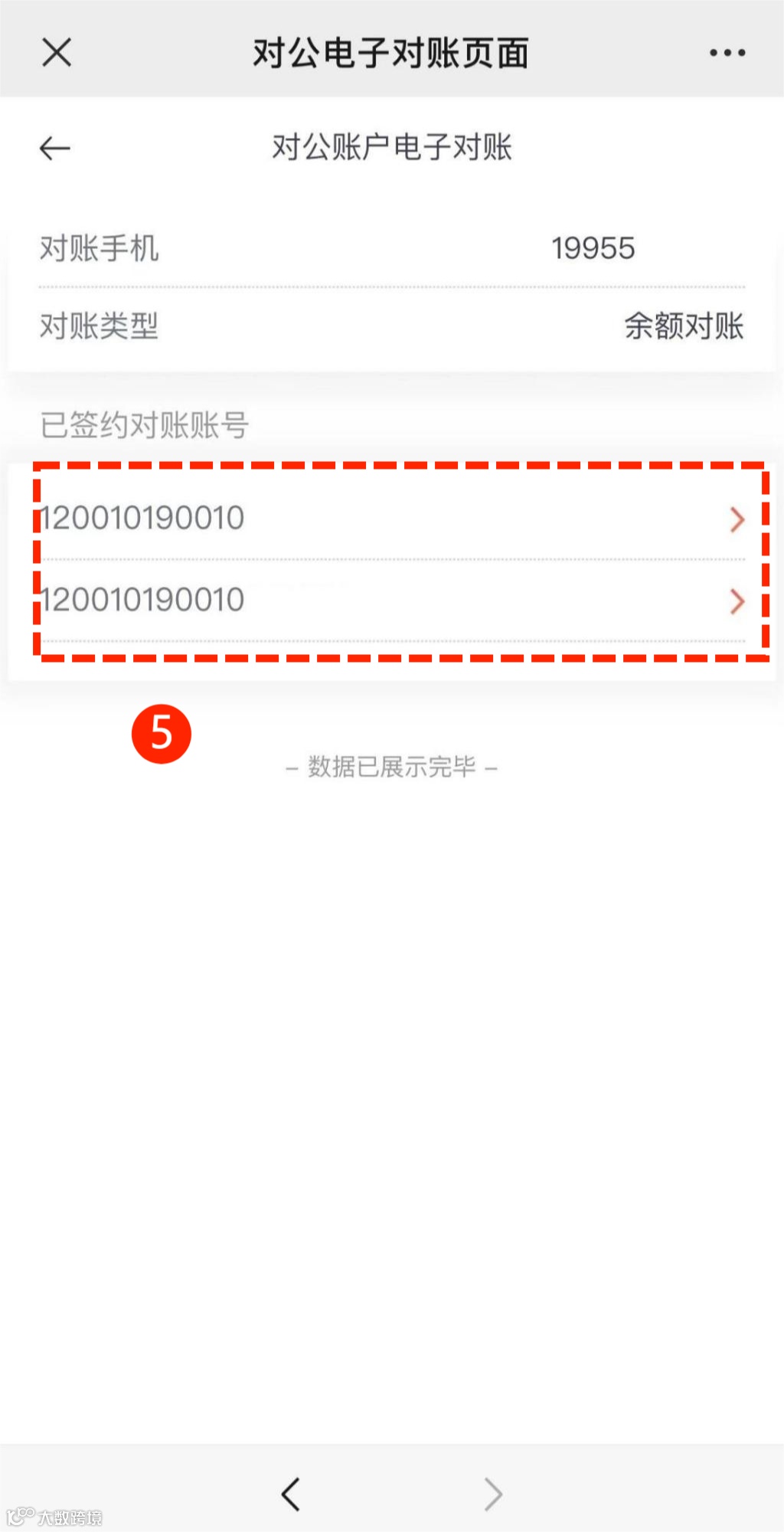 第三步:逐一点击“已签约对账账号”