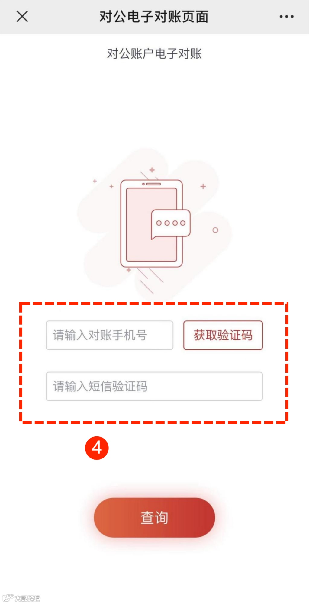 第二步:根据系统提示输入对账手机和验证码