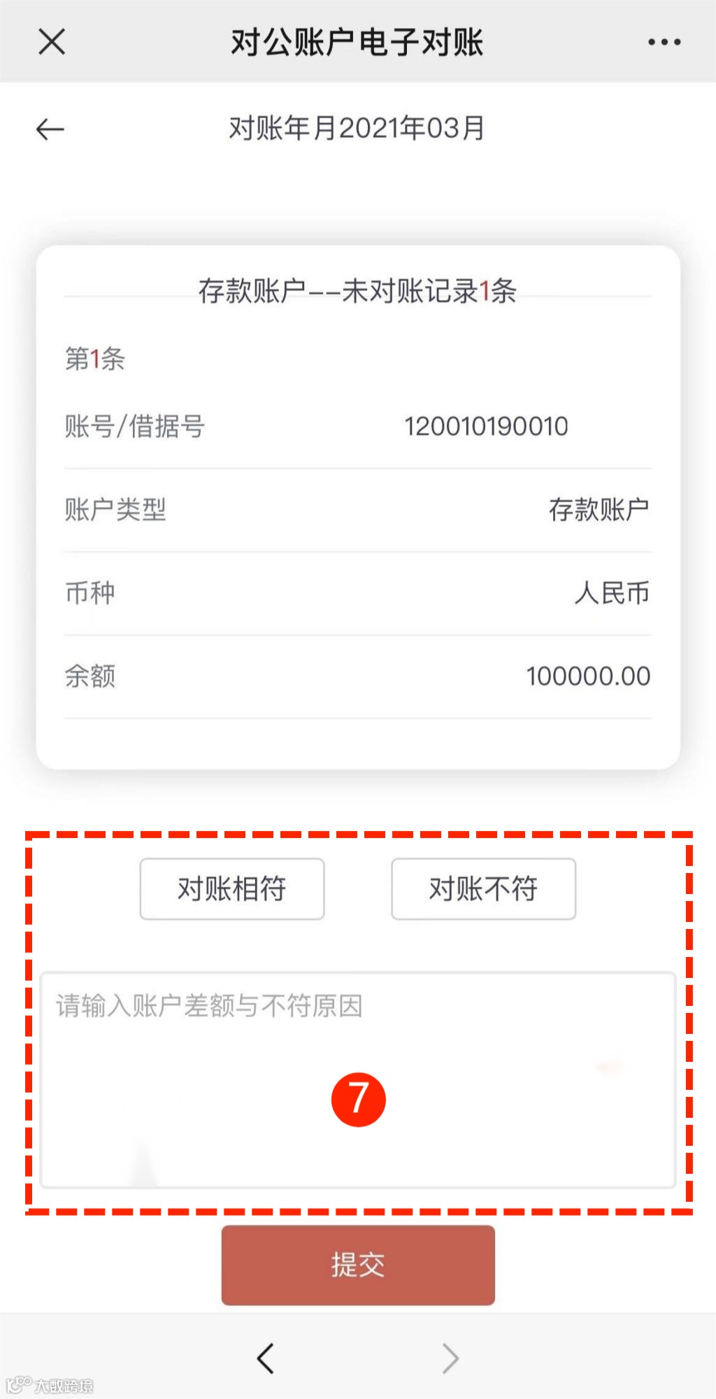 点击“对账相符”或“对账不符”