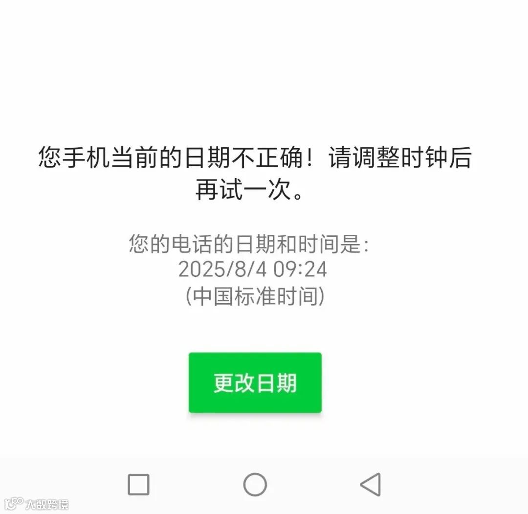 近期,部分中国大陆用户在使用WhatsApp时收到提示:“您的手机当前的日期不正确!请调整时钟后再试一次”,当前显示时间为2025/8/4 09:24(中国标准时间)