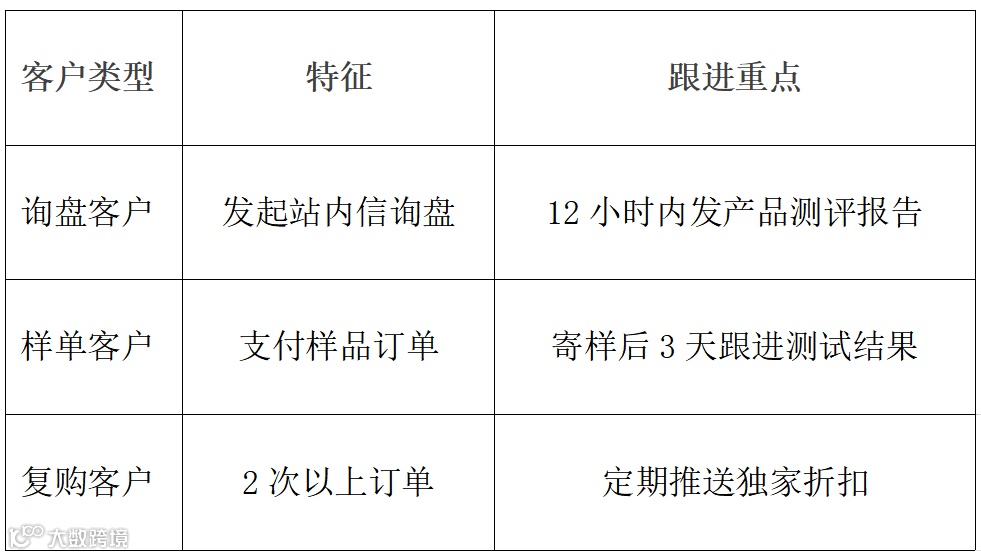 根据成交阶段和买家价值进行双维度分层管理。针对L3/L4级买家(中大规模采购商),建议溢价20%投放并优先分配资深业务员跟进。