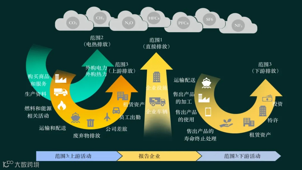 范围3:则包含了所有未纳入范围2的间接排放,诸如上游与下游排放、购买材料与燃料的开采和生产过程、非报告实体掌控的车辆运输活动(如员工通勤与商务出行)、售出产品及服务的使用、外包业务、废旧产品回收以及废物处置等。