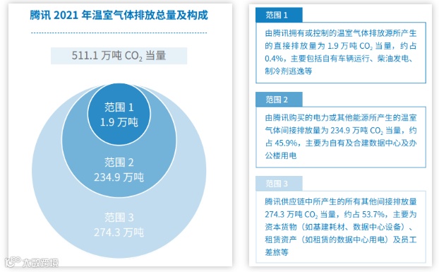腾讯的《碳中和目标及行动路线报告》通过详细披露2021年的温室气体排放总量和构成,展示了公司在不同排放范围(包括直接排放、能源相关间接排放和其他间接排放)的碳足迹,同时体现了其在碳排放核算方面的全面性和透明度。
