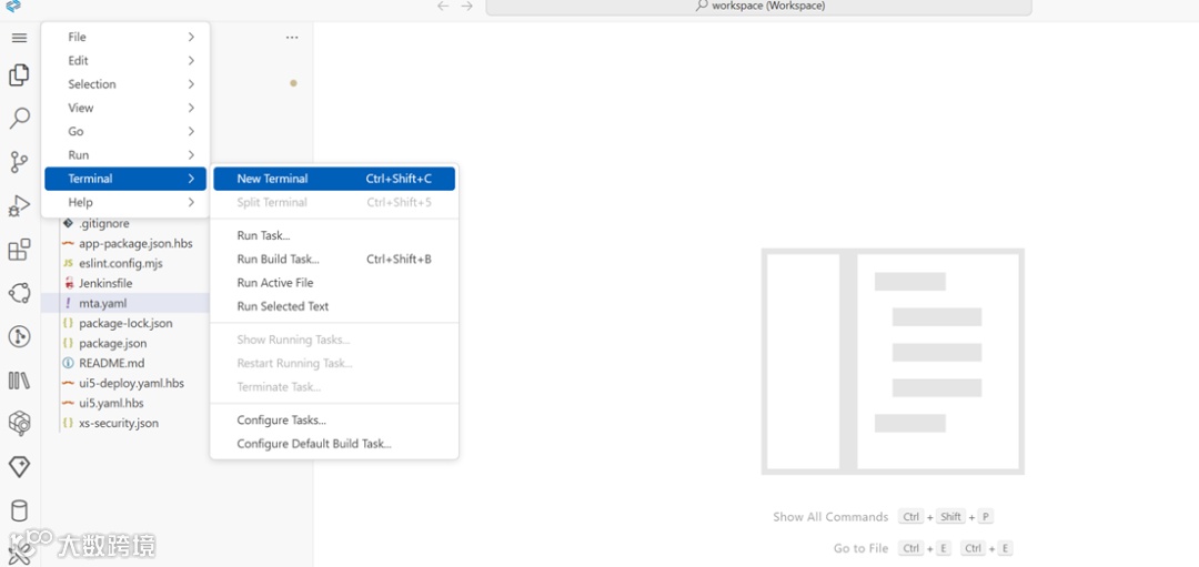 现在,我们已准备好将开发内容部署到数据库中。在继续之前,如果您在 SAP Business ApplicatiStudio中使Dev Space,我们建议您增加集成终端中的默认回滚行数。这是因为有许多行日志输出即将生成,您将希望看到所有行。因此,请使用菜单路径File -> Preferences -> Settings并搜索Terminal->Integrated: Scrollback设置。将值设置为 10000。现在,完成这些作后,您就可以进行部署了。在SAP HANA Projects 视图中的db文件夹级别按下Deploy按钮(看起来像火箭)。