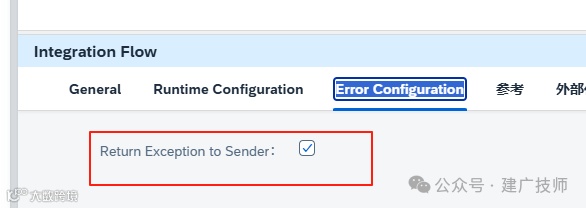 到这里,接口基本创建完成。点击Integration Process窗口外的空白部分,唤出Integration Flow窗口,General可以填入接口的描述信息,方便后续查看管理; Error Configuration可以让接口的保存信息返回给调用者,否则你只能在CPI日志中查看错误消息