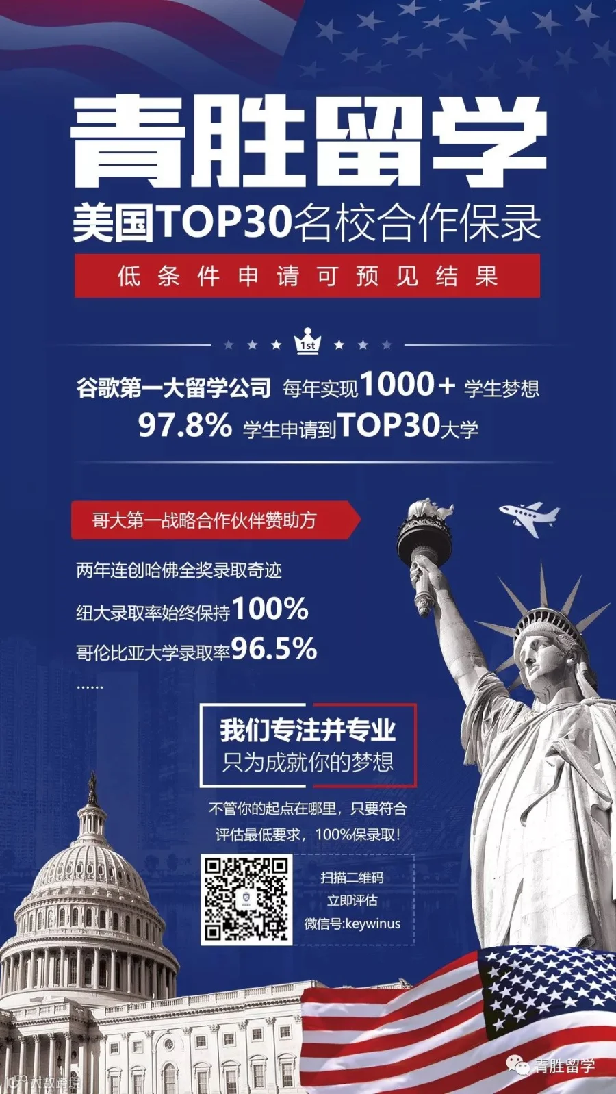 “专注并专业,只为成就更好的你”是青胜留学始终以来的使命与愿景。2020让我们与青胜留学一同携手共进,打造一个专业、权威、优质、诚信的中美合作留学服务机构,帮助每一位学生实现自己的梦想,打开常青藤名校之名。