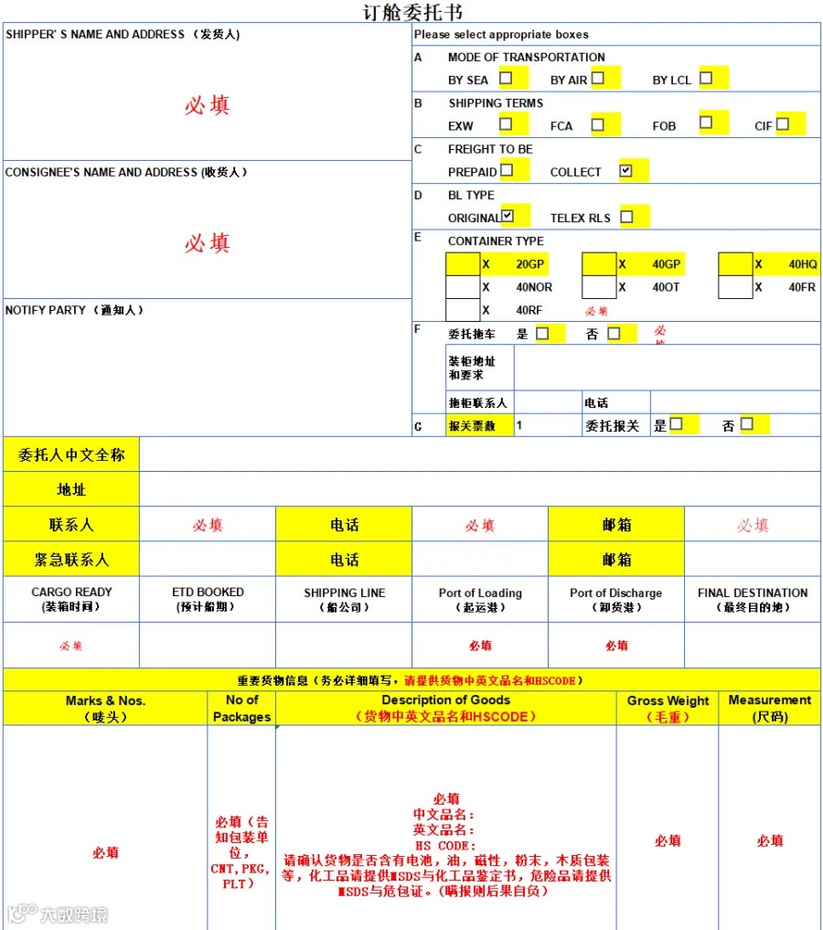 这样对应看,订舱出口需要提前准备的文件我们就知道了