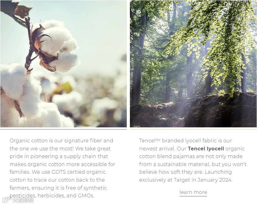 同时,其还强调产品采用的是有机棉,没有使用合成农药和化肥,这则能够打消部分消费者的潜在顾虑,提升消费者信任度。