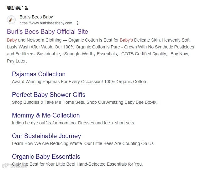 付费广告:Burts Bees Baby的付费广告文案,主要围绕着其卖点展开,Burts Bees Baby提到了产品的持久性和质量,强调其产品在多次洗涤后,仍然保持柔软和舒适状态,这是能够吸引关注产品质量的消费者的注意的。