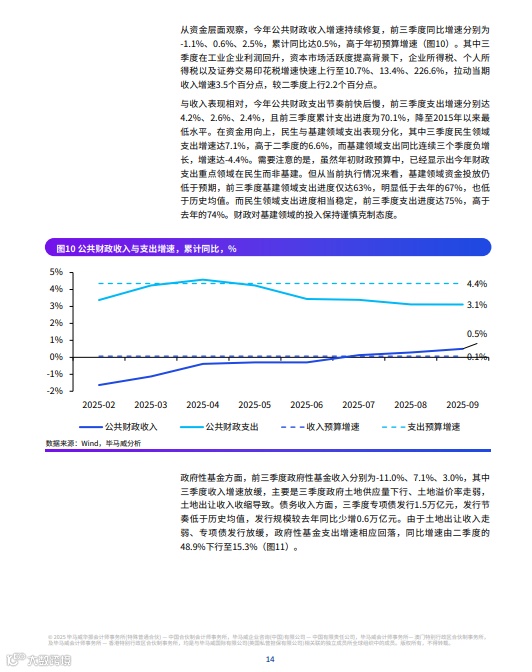 图:公共财政收入与支出增速累计同比%