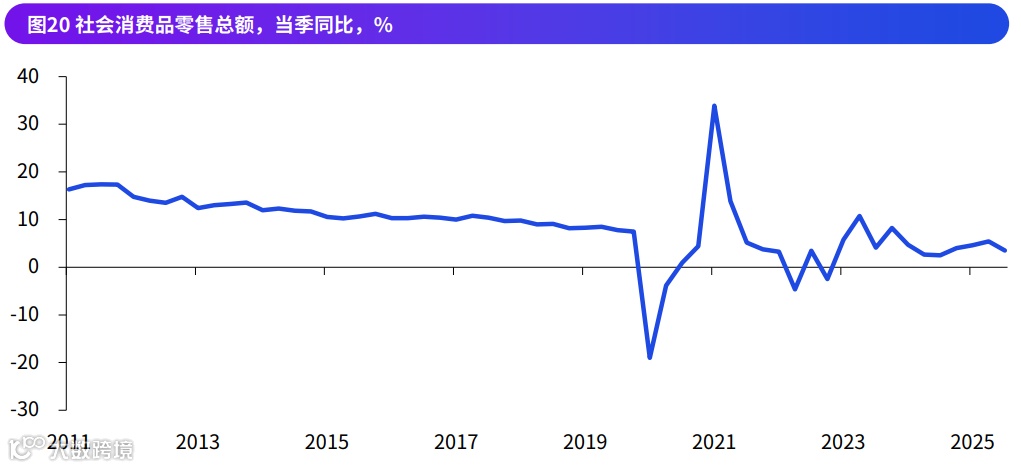 图:社会消费品零售总额当季同比%