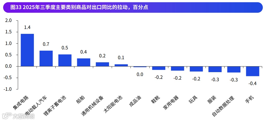 三季度集成电路出口增长31.4%,电动载人汽车出口增长51.2%,“新三样”合计拉动出口增长1.4个百分点。