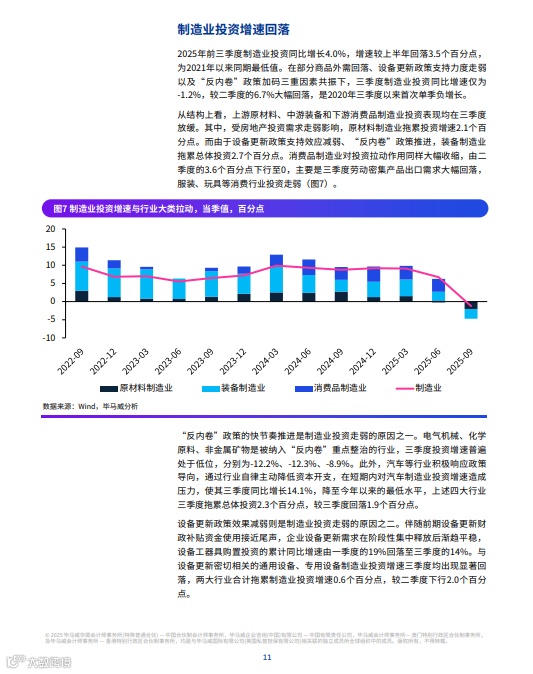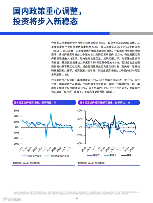 三季度经济增速放缓至4.8%,主要受“反内卷”政策压制投资、房地产低迷拖累。四季度在中美关税降低、政策性金融工具投放等支撑下,内需有望修复。