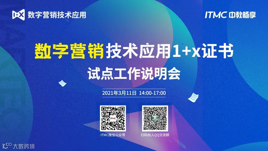 3月11日,由中教畅享(北京)科技有限公司主办的数字营销技术应用1+X证书试点工作说明会顺利召开。全国商业职业教育教学指导委员会常务副主任马广水、中国商业联合会副会长刘勇、无锡商业职业技术学院党委书记杨建新、高等教育出版社高职事业部赵洁、中教畅享(北京)科技有限公司董事长黄学全出席会议,来自全国职业及本科院校、行业企业代表约1000人在线参会。