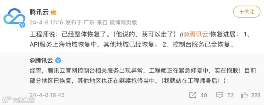 4月8日,腾讯云又出现了一次多region的大范围故障,据说是管控面挂了,原因和去年1112阿里云的那次类似。不少人问我对此事的看法,和去年那次故障一样,我的观点依然是:无论是哪家云厂出了此类问题,对于云计算行业来说打击都是灾难性的。用户对于行业能力的认知依靠的是过去耗费了大量时间、人力堆砌,逐渐建立心智并达成共识,但信心的崩塌往往都只要一瞬间。