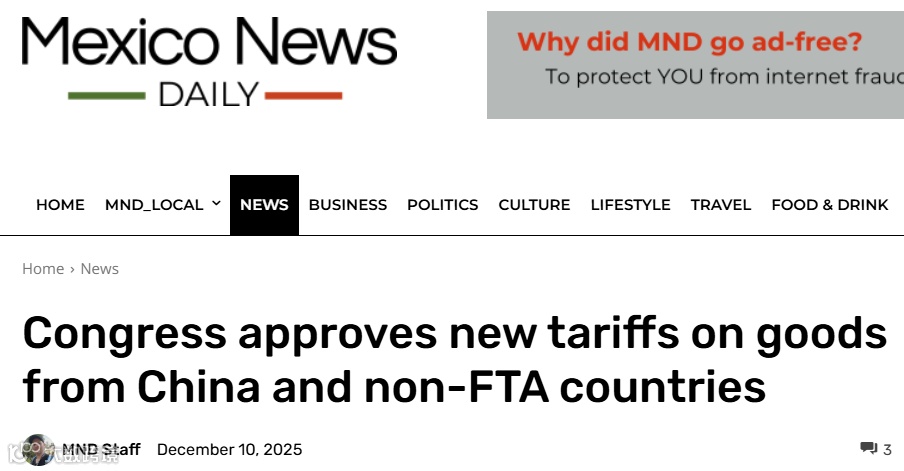 该法案针对与墨西哥无自由贸易协定(TLC)的国家,包括中国、印度、韩国、越南、泰国、印度尼西亚、俄罗斯、土耳其、巴西、尼加拉瓜、阿联酋和南非等;欧盟、美国、加拿大等自贸伙伴不受影响。