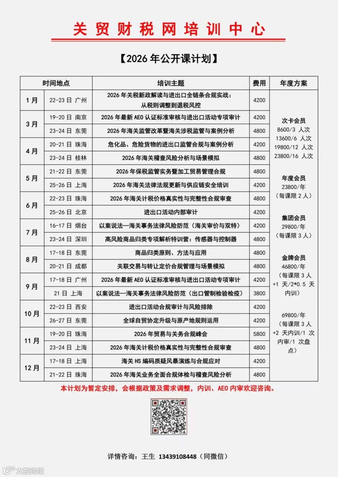 2026年01月22-23日 广州+直播 2026年关税新政解读与进出口全链条合规实战:从税则调整到退税风控