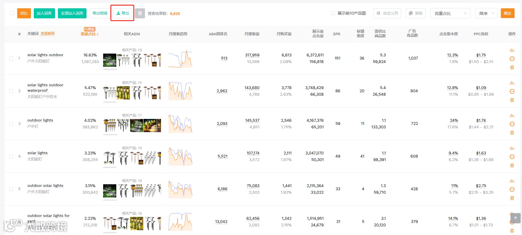 这份报告告诉我们几个关键信息:一是哪些关键词的搜索量大;二是哪些关键词的转化率高;三是竞品如何在标题的不同位置分布这些关键词。数据显示,"solar lights outdoor"月搜索量相当可观,而"motion sensor security"虽然搜索量较低但转化率高达8.3%。