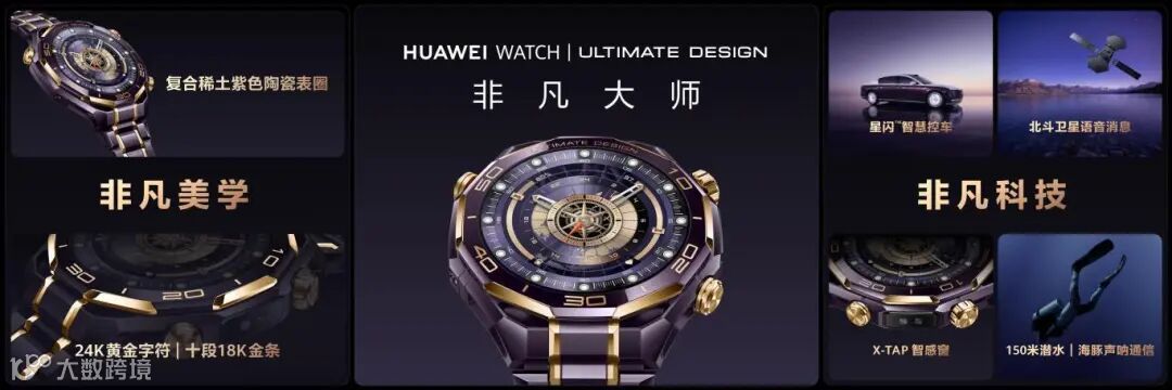 全新一代HUAWEI WATCH ULTIMATE DESIGN非凡大师紫金款。这不仅是一款高端智能手表,更是ULTIMATE DESIGN系列“敢于突破,敢于非凡”品牌精神的直接体现。它将智能手表的尖端科技与传统经典腕表美学设计融为一体,使其不仅满足了用户对品质与性能的极致追求,更成为他们探索未知、诠释非凡人生的理想之选。