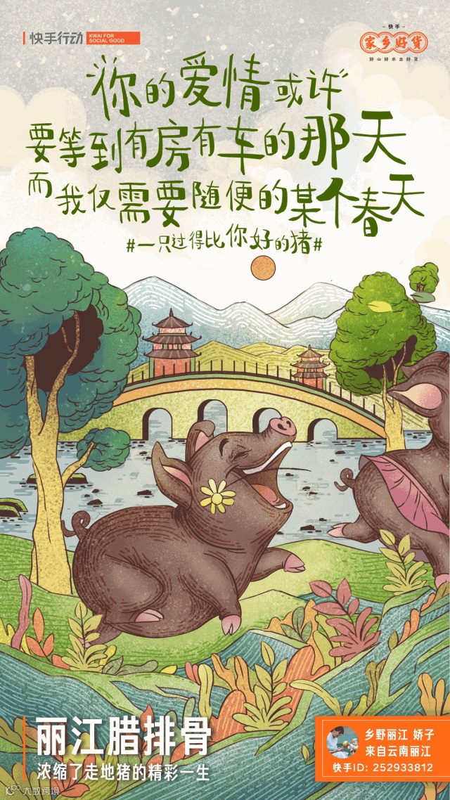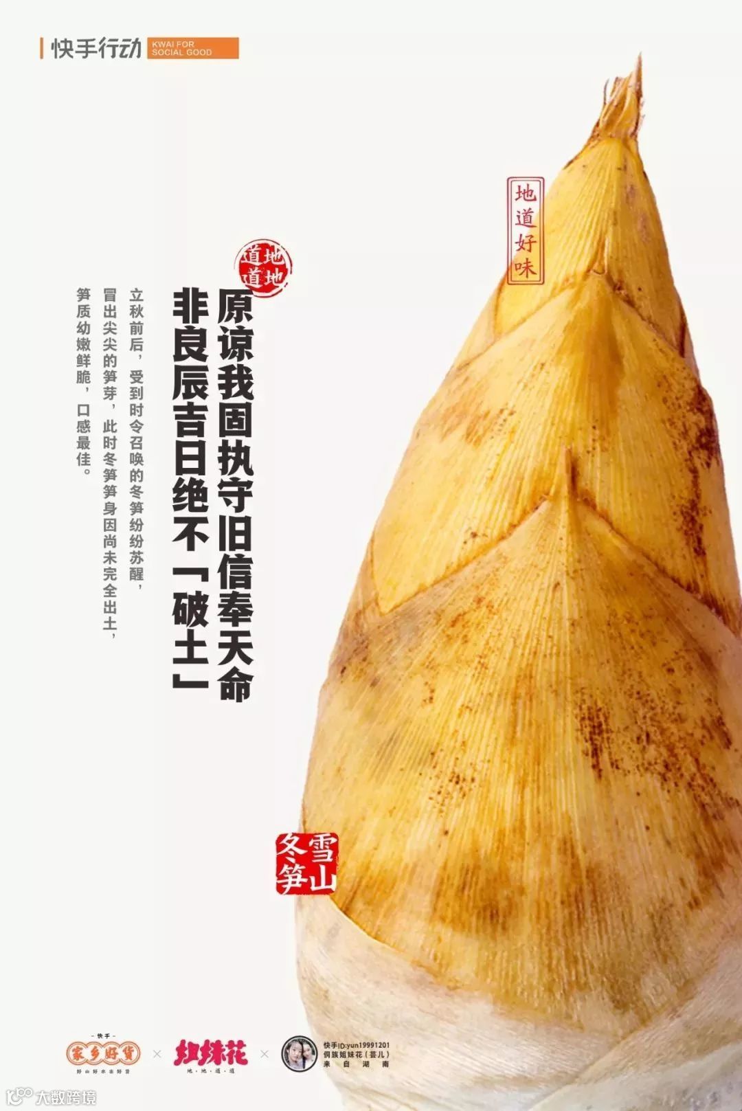 近期,快手联合阳狮广告、赞意互动等10家创意公司,为“家乡好货”板块的地方特色产品打造创意内容。从核桃的社交传播、走地猪的动态呈现,到冬笋化作歌曲,品牌以脑洞海报与暖心视频激发用户参与,实现“为家乡带货”的情感转化。