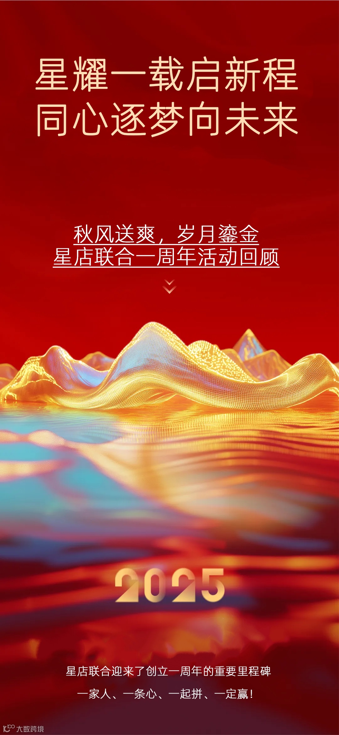 砥砺而行再开拓,展望前景复高歌。“一家人、一条心、一起拼、一定赢”,这十二字箴言不仅是口号,更是星店人刻入骨髓的信念。从初心到行动,从信念到实践,星店联合用一年的时间书写了一段属于自己的传奇。未来,全体星店人将以更昂扬的姿态、更务实的行动,向着“万店链一家,星光遍天下”的宏伟愿景奋勇前进。相信在董事长指引与全员拼搏中,星店联合将绽放更耀眼光芒,书写更恢弘篇章!