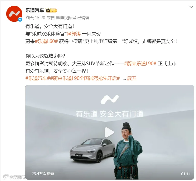 蔚来乐道汽车借“刘署令”IP出圈:符号再造与国潮营销的边界博弈