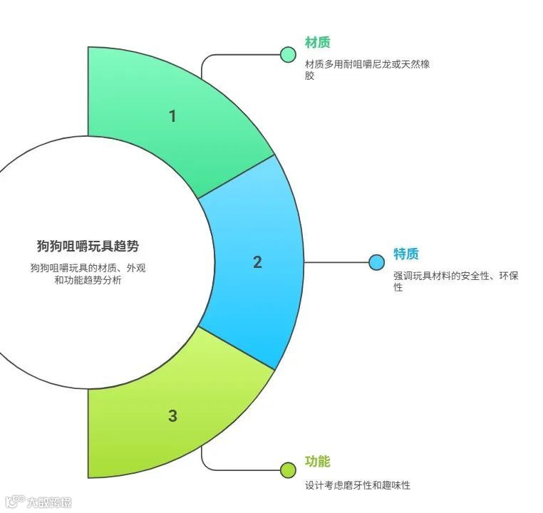 从竞品分析来看,当前主流狗狗咀嚼玩具集中在材质、安全性和趣味性三个维度:多采用耐咬尼龙或天然橡胶,强调环保无毒,并融合益智或互动设计。然而,多数产品仍以人类审美为导向,忽视了狗狗的真实感知偏好。
