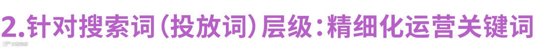 建立了结构化的关键词库之后,我们就可以根据账户的广告层级,分层次地对关键词流量进行精细化拓展,并提升其与广告内容的相关性。通过这种方式,我们可以实现关键词优化工作的针对性,确保每一层的优化都能层层递进,最终达到提升广告效果的目的。
