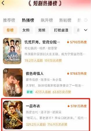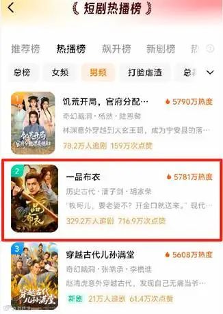 上线近一个月,《一品布衣》仍稳居红果短剧整体热播榜第11位、男频榜第二位。