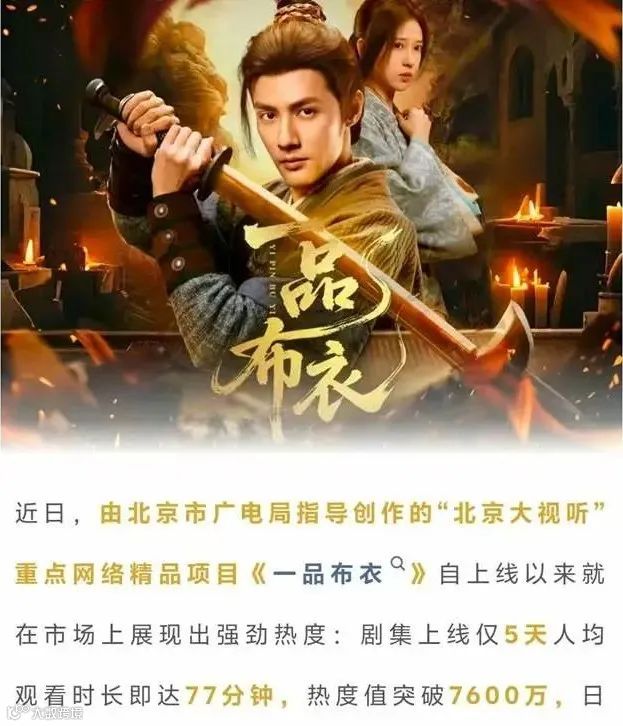 一般竖屏短剧热度周期仅为7天左右,而《一品布衣》持续走热,其用户平均停留时长达77分钟,远高于行业平均20分钟、爆款短剧约40分钟的水平。