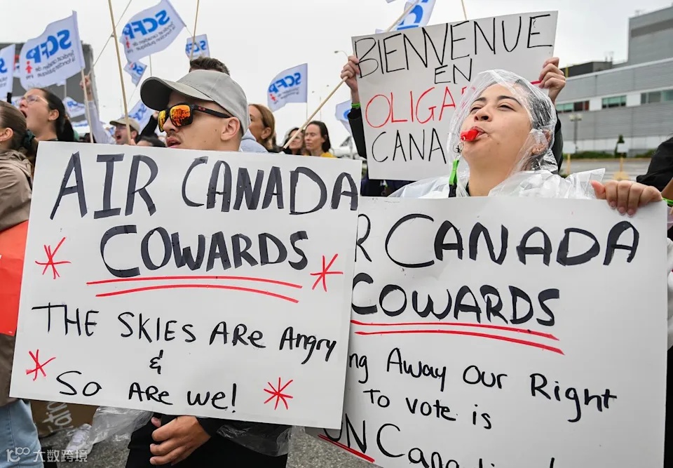 加拿大航空公司超1万名空乘人员因薪资纠纷,自8月16日凌晨1点发起全国罢工,导致加航主线及子公司Rouge航空全部停飞,每日约700个航班取消,影响13万旅客。罢工次日,加拿大联邦政府紧急援引《劳工法》第107条,要求劳资双方接受强制仲裁并立即复工,以保障旅客出行及医疗物资运输。但工会(CUPE)公开撕毁复工令,称政府干预“违宪”,誓言继续罢工直至达成公平协议。加航声明称,航班至少停飞至8月18日晚,复航后仍需一周恢复运力。